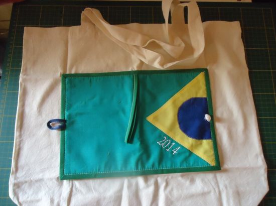 Você também pode encapar uma agenda ou caderninho de anotações com o tema sobre a Copa do Mundo. Para fazer esta capa basta utilizar as cores da bandeira do Brasil, ou até mesmo uma bandeirinha, e colocar alça (caso você goste de transportar a peça pelo pulso) e também acrescentar um botão, para fechar. E você pode até presentear com esta capa que pode enfeitar até um caderno de receitas. E este caderno de receita você pode colocar dentro algumas receitas típicas brasileiras e tanto relacionadas às comidas quanto às bebidas.