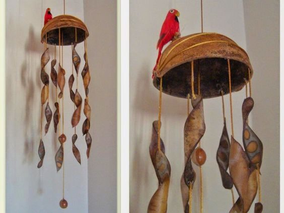 Para quem gosta de enfeites há o sino de vento. Além de casca de coco você pode utilizar os mais diversos itens para confeccionar o seu sino de vento.