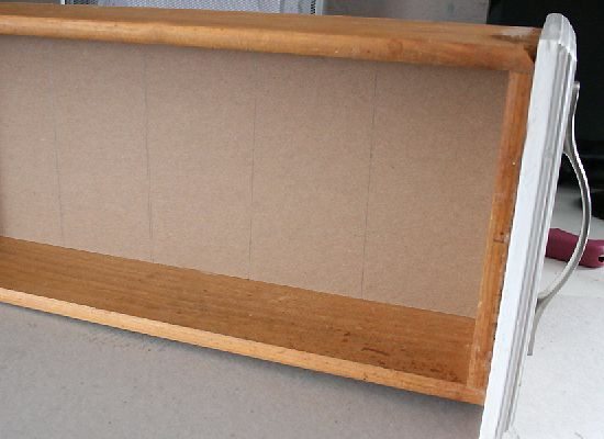 Em seguida, para finalizar a sua peça, cole as divisórias de sua gaveta sobre uma parte inteiriça de papelão, que já deve estar encapado com o mesmo papel contact que você utilizou para encapar as divisórias. E está pronto!
