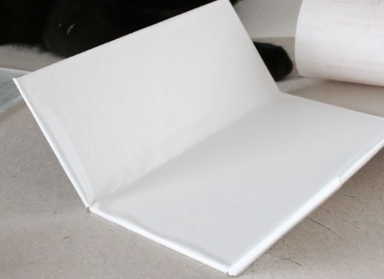 Agora, comece a encapar toda a parte com um pedaço de papel contact, mas respeitando as dobras, para que ao final não fique repuxando.
