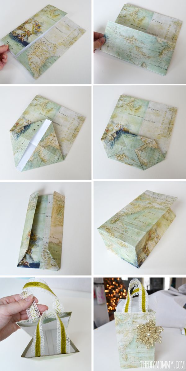 Comece separando todos os materiais que você vai utilizar no processo de como fazer embrulho de presente. Corte um retângulo no papel escolhido. Cole as pontas deste retângulo. Dobre os cantos inferiores formando “pontas de lança”. Aplique cola nas laterais da parte inferior e cole uma aba sobre a outra, para criar o fundo do saco de presente. Cole a borda superior com a tesoura para picotar. Para finalizar a sua peça, coloque o presente dentro do saquinho, dobre a borda quantas vezes quiser e cole o adesivo, para fechar. E está pronto!