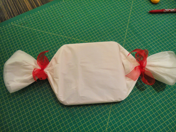Para fazer embrulho de presente com papel de seda basta enrolar o papel de seda ao redor do presente e amarrar pedaços de fitas nas pontas, criando um formato de bala para o seu presente.