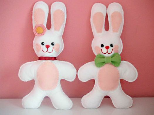 As crianças adoram bichinhos de pelúcia. E se você quiser agradar as suas, faça um enfeite de coelho da Páscoa que pode virar objetos de decoração do quarto de seus filhos ou até mesmo um brinquedo. E se você gosta de deixar a sua casa no clima das datas comemorativas, faça vários destes simpáticos coelhinhos e espalhe por sua casa.