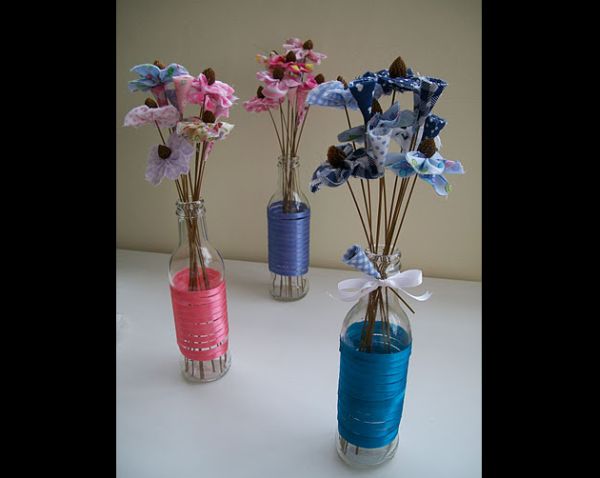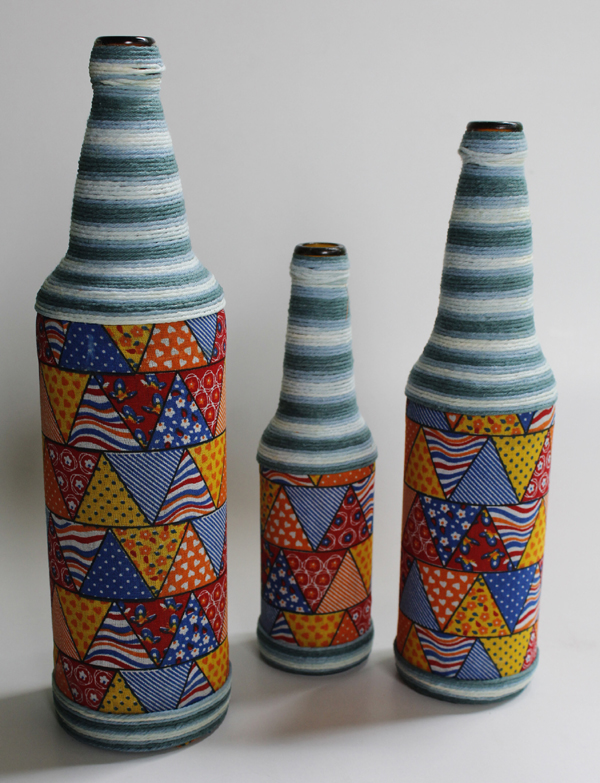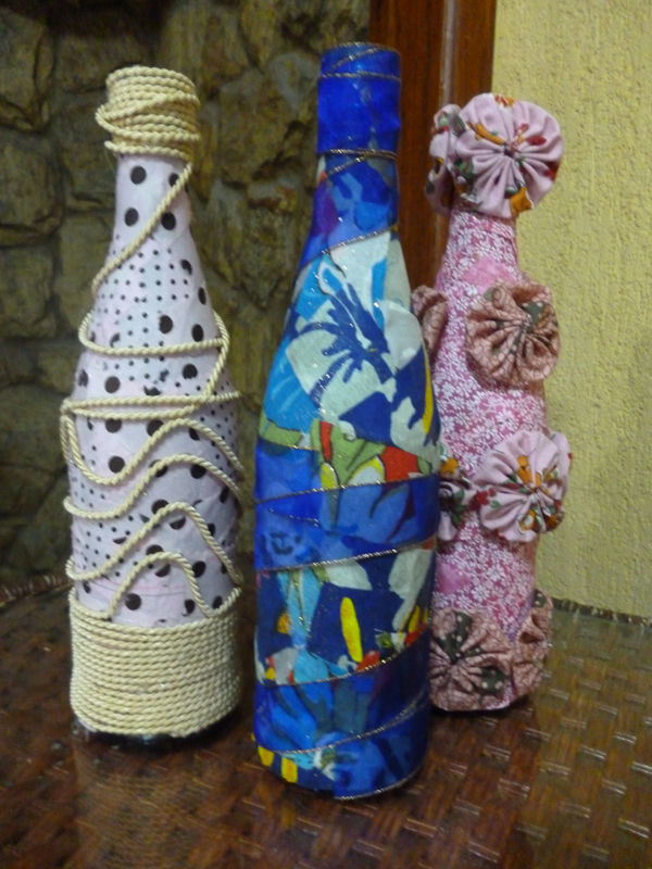 Artesanato com garrafas de vidro e tecido