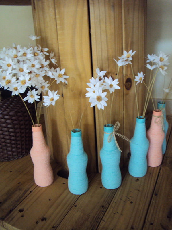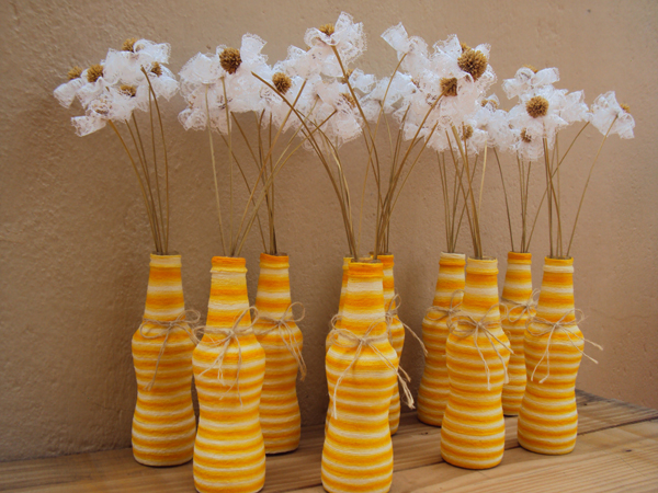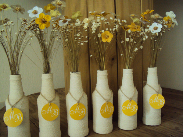Enfeites de Mesa com Garrafa e Barbante