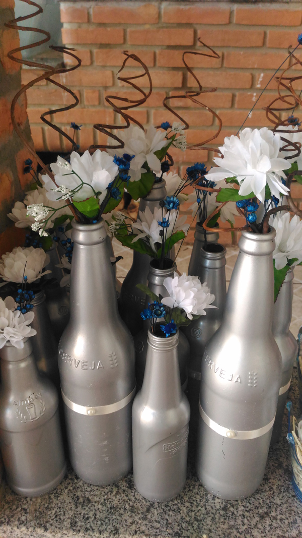 O enfeite de mesa com garrafa de cerveja, mesmo sendo barato resulta em uma decoração incrível, ainda mais se você caprichar nos detalhes. Decore a sua garrafa de cerveja ou a sua garrafa de refrigerante de vidro com o material que quiser e usando a técnica artesanal que desejar e consiga peças lindas e inesquecíveis, que deixarão seus convidados impressionados.