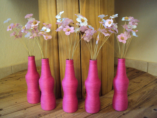 A seguir vamos ver diversos modelos de garrafas que foram decoradas com barbante, elas são bem simples de serem feitas e apesar de demorar um tempo para a produção da peça o resultado final fica maravilhoso, confira alguns modelos: