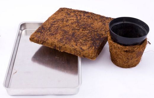 Em seguida, coloque as luvas de borracha e misture a fibra de coco com a cola. Deixe descansando por 2 horas para absorver bem a cola. Depois faça um quadrado, com o auxílio da forma de alumínio, e um formato de vaso, com o auxílio do vasinho de plástico.