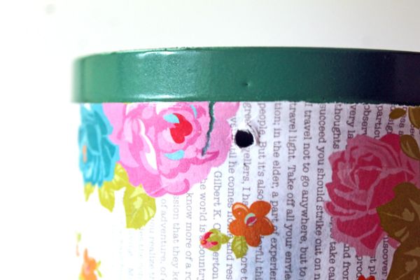 Comece separando todos os materiais que você vai utilizar em seu artesanato. Depois meça o tamanho da sua lata, passe a medida para o papel e encape a sua lata. Encape também a parte interna da tampa da lata. Após revestir as partes, aplique mais cola para decoupage sobre todo o papel, para impermeabilizar.