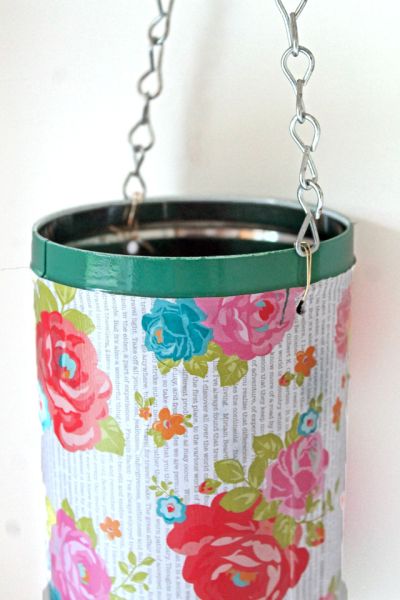 Logo após, amarre a tampa nos furos do meio do fundo da lata.
