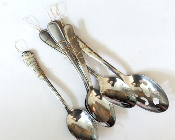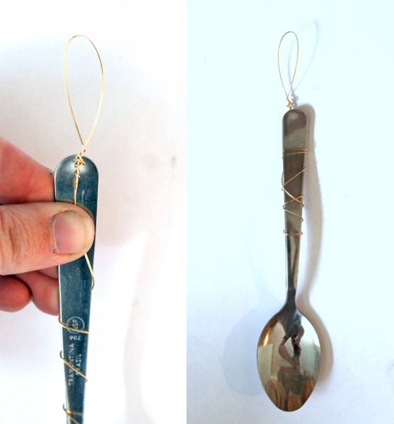 Logo após, amarre arame nos talheres, para poder pendurar.