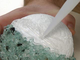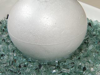 Passo a Passo da Confecção: Primeiro pegue o vidro quebrado e coloque em uma vasilha, depois pegue a esfera de isopor e aplique a cola de silicone em uma parte, com cuidado mergulhe essa parte nos vidros quebrados, assim grudando eles na esfera, faça isso até completar a esfera e deixe secar. Com a ajuda de uma tesoura, faça um corte e retire a esfera do interior, deixando um buraco para que você coloque a instalação elétrica. Feche parte da esfera e depois introduza a instalação elétrica no interior da esfera, faça um bom acabamento com cola e vidros. Bem simples não?