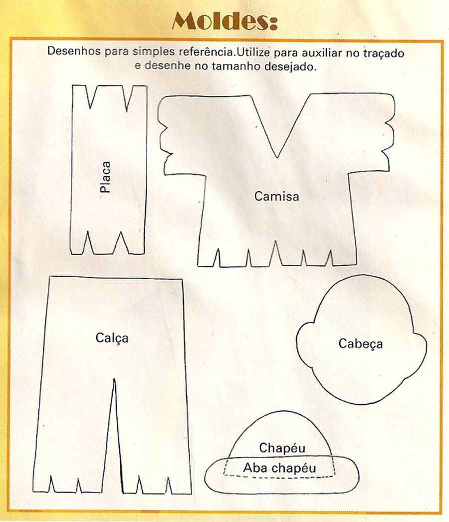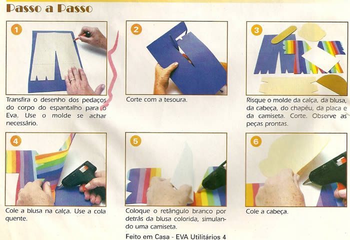 Essa dica é bacana para fazer em época junina. Trata-se um espantalho em EVA que você poderá fazer com alguns passos simples. Você terá os moldes para criar com tranquilidade. É só passá-los para o EVA, cortar e começar a produzir seu item meigo e totalmente artesanal. O mais legal de fazer um item desse em casa, é que você não precisará gastar e comprar um espantalho já feito, economizando e se divertindo na hora da confecção.