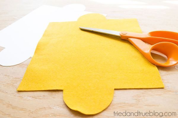 Comece transferindo o molde para a respectiva cor do feltro escolhido.