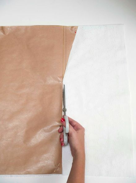 Logo após, posicione o seu molde sobre o tecido e prenda com os alfinetes para costura. Recorte duas vezes, pois você irá precisar de duas partes.