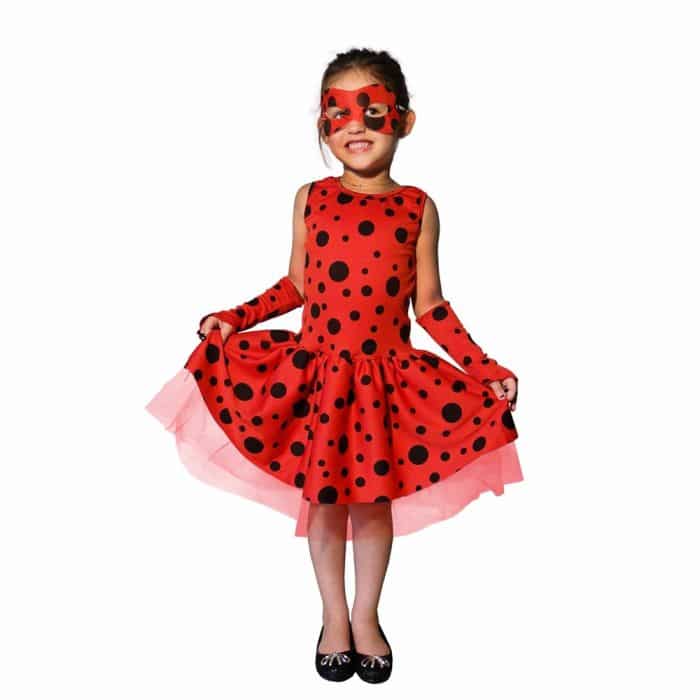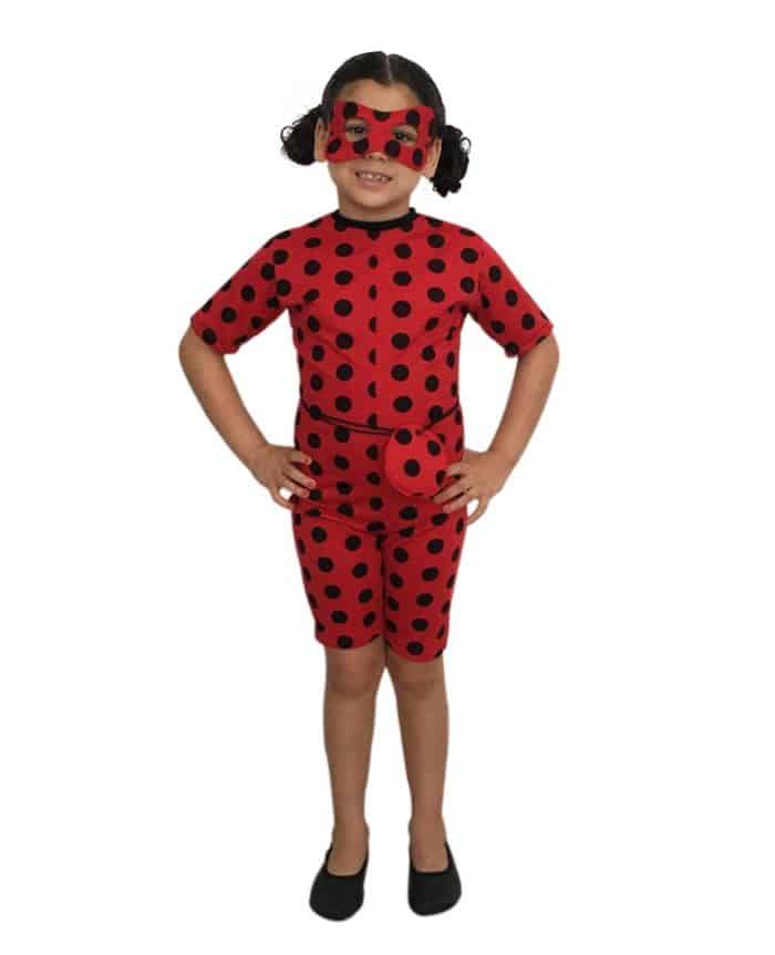 O desenho Ladybug conta as aventuras de uma menina que usa uma fantasia de joaninha, por isso, a base da fantasia deve ter um tecido vermelho com bolinhas pretas, assim como a joaninha, um bichinho muito fofo e simpático. Além da roupa aposte também nos acessórios, como a máscara, bolsa e até luvas e meias, se você encontrar peças com o estilo da personagem.
