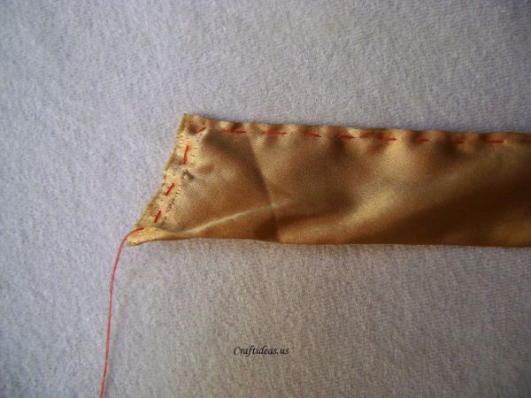 Em seguida, una as pontas da tira de tecido com o alinhavo que já vem fazendo.