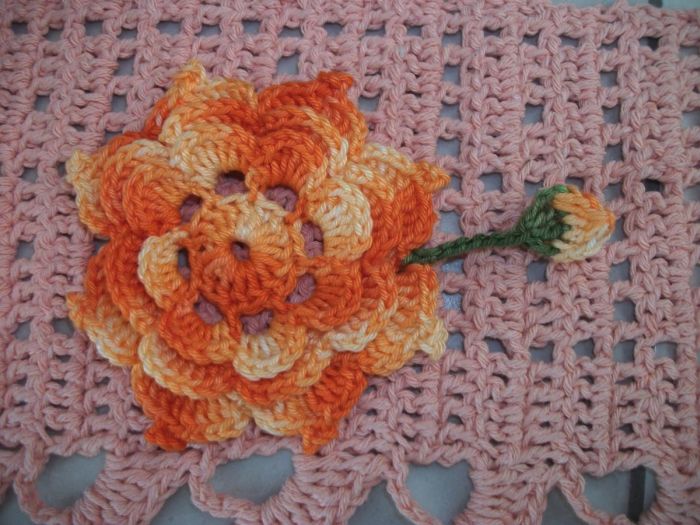 A sua flor em crochê pode ir parar em seu tapete de diversas maneiras, para decorá-lo de forma preciosa. Você pode deixar a flor em crochê no centro do tapete, em uma das laterais ao redor de todo o tapete, como se fosse um bico.