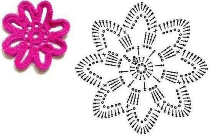 Aproveite o gráfico desta linda flor, que é bem fácil de ser seguido, e faça muitas, para os seus tapetes e também para outros trabalhos em crochê.