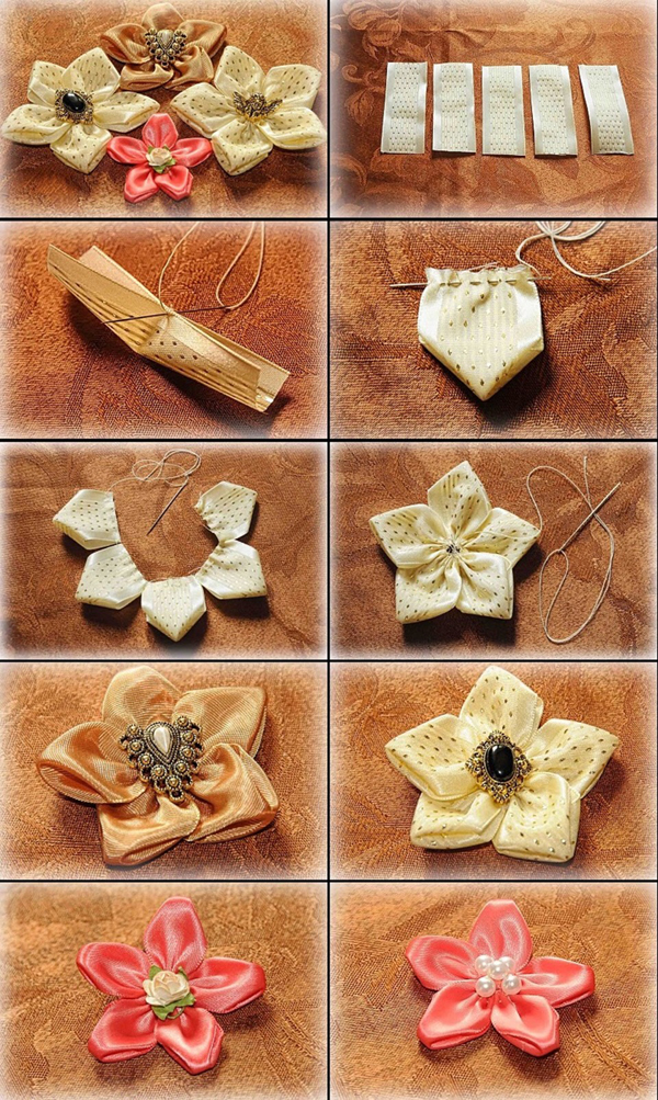 A flor de fita de cetim dobrada é sempre linda (Foto: crafthubs.com)
