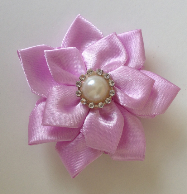 flor de fita de cetim lilás