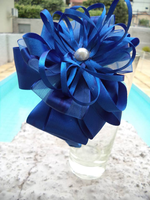 flor de fita de cetim azul escuro