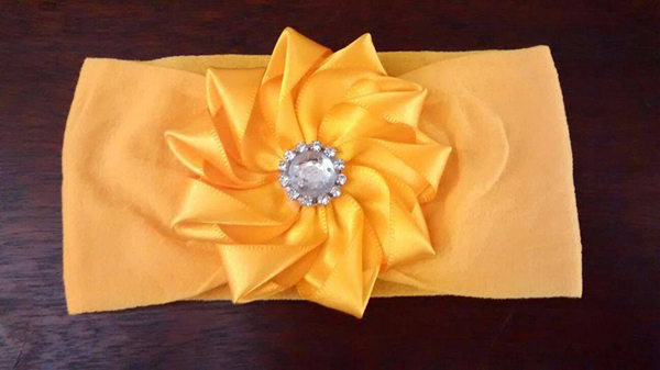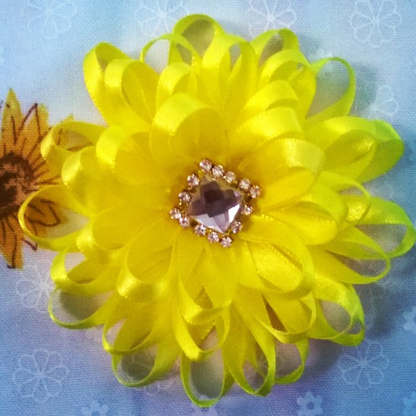 flor de fita de cetim amarela