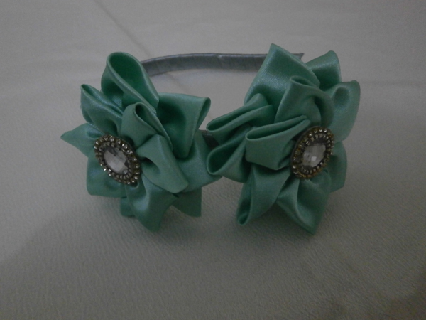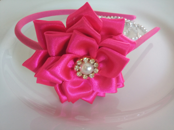 flor de fita de cetim na tiara