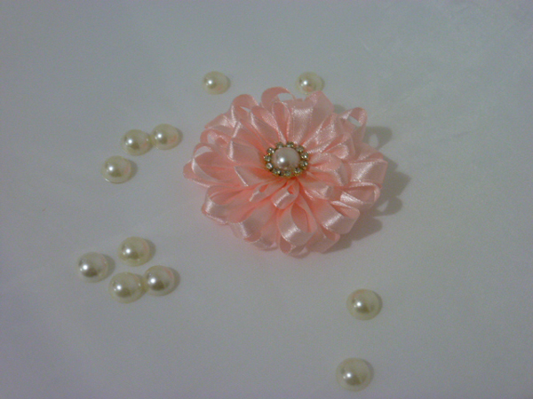 flor de fita de cetim salmão