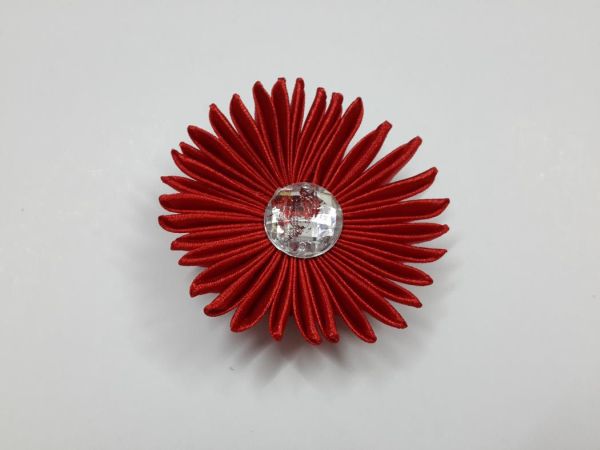 Em seguida, cole ou costure a pedraria no centro da sua flor de fita de cetim.