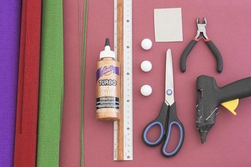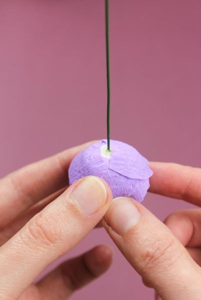 Logo após, vire a flor e aplique cola perto do arame floral.