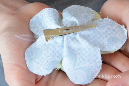 Logo após, costure a presilha tic tac na base da sua flor.