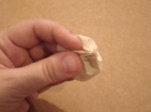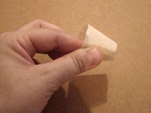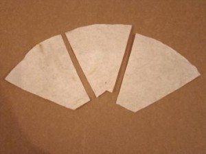 Agora, pegue outro filtro já preparado adequadamente, corte as bordas laterais e divida-o em três.
