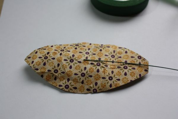 Em seguida, corte a folha e cole na parte detrás um pedaço de arame floral. Faça quantas flores você quiser.