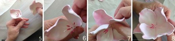 Pinte as pétalas com blush ou com sombra, se você desejar. Aqueça cada pétala e modele as bordas com os dedos. Mas cuidado para não se queimar neste processo.