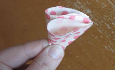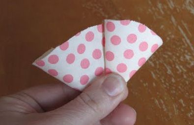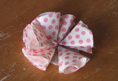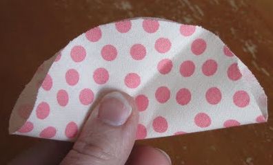 Comece cortando um círculo no tecido escolhido com tamanho de 5 cm. Corte muitos círculos no tecido. Depois dobre o círculo ao meio.