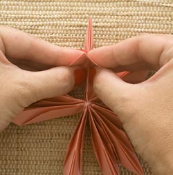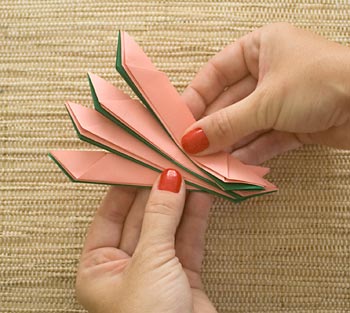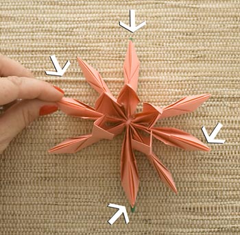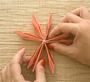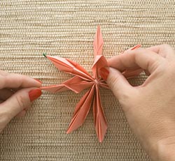 Agora, as partes da flor você deve dobrar com as pontas para fora.