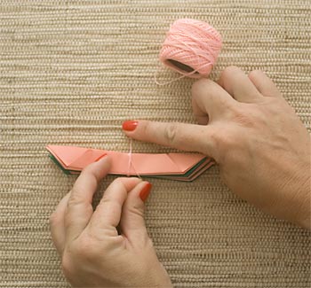 Logo após, amarre uma pedaço de linha bem no centro do quarto conjuntos.