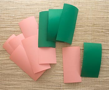Em seguida, faça várias destas partes da cor de papel que será a flor e também da cor do papel que será as folhas.
