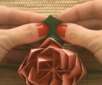Em seguida, encaixe uma “pétala” sobre a folha.