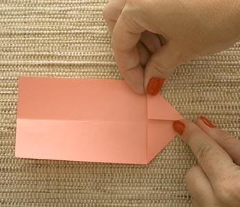 Logo após, abra a dobra e dobre a ponta de baixo do canto direito até a linha demarcada no centro.