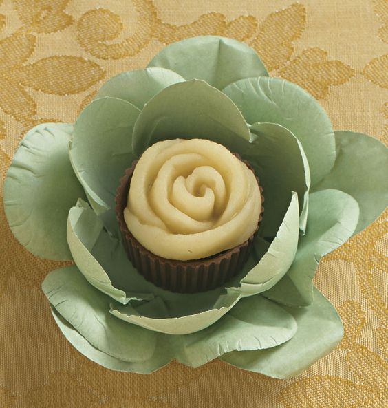 Entre as 20 ideias de forminhas de bombons há os modelos que se parecem com uma rosa, com o bombom sendo o miolo.