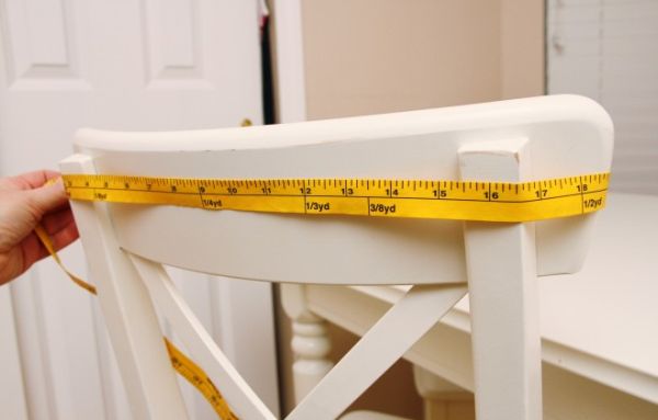 Comece medindo a parte mais larga de suas cadeiras, com o auxílio da fita métrica. E anote estas medidas no papel, com o auxílio do lápis.