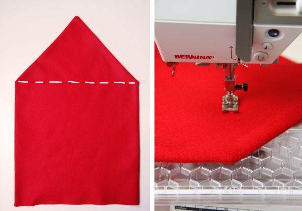 Em seguida, passe uma costura reta à máquina onde começa a ponta da peça.