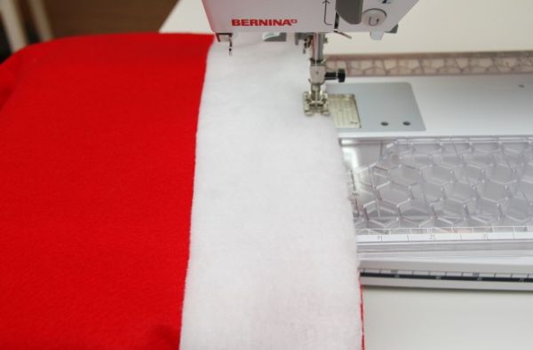 Logo após, costure uma faixa de feltro branco ao redor da base de sua peça, na parte que está aberta.