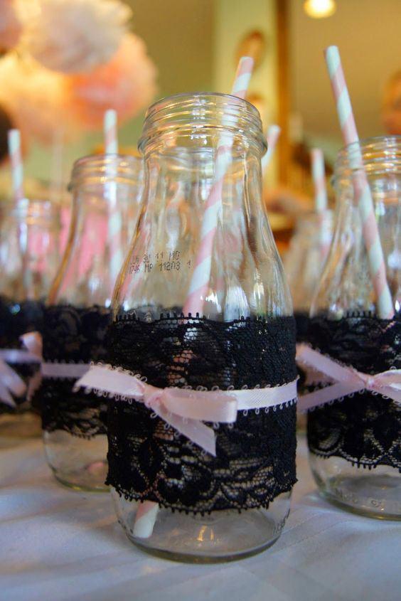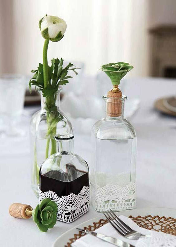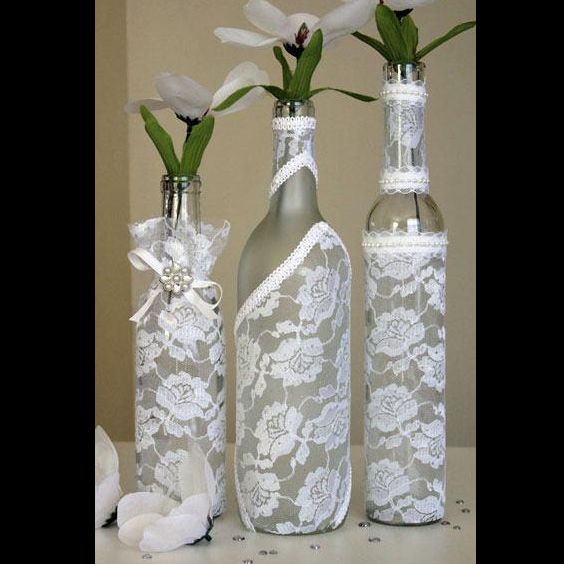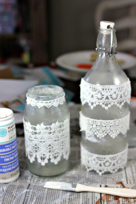 renda para decorar garrafas de vidro