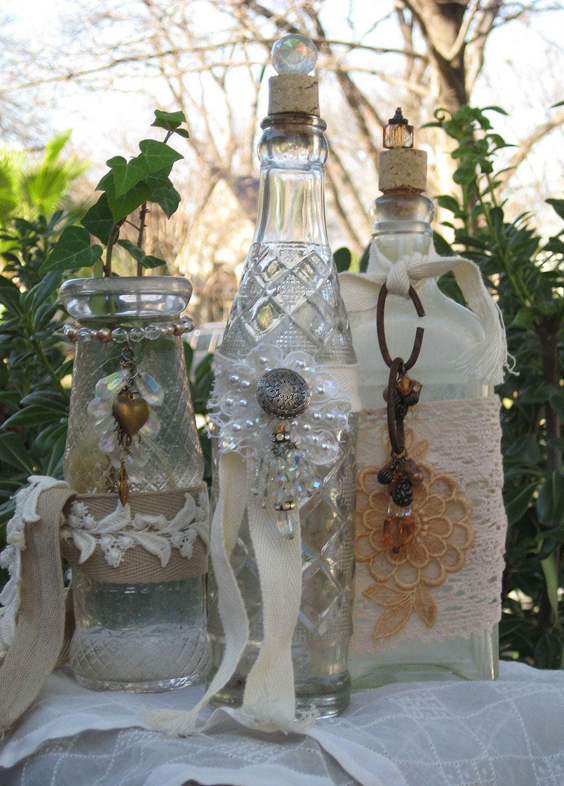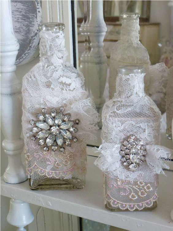 garrafas de vidro decoradas com renda
