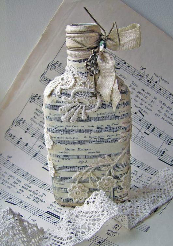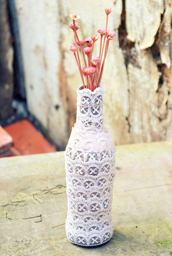 Deixe o mundo ver os seus talentos artísticos fazendo garrafas decoradas com renda (Foto: homedecoo.net)