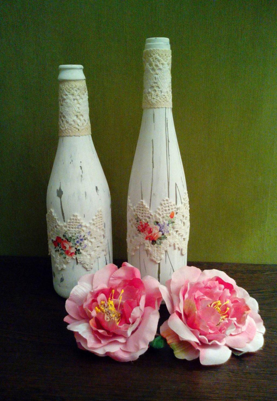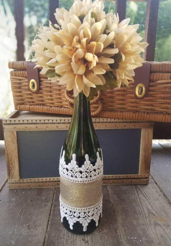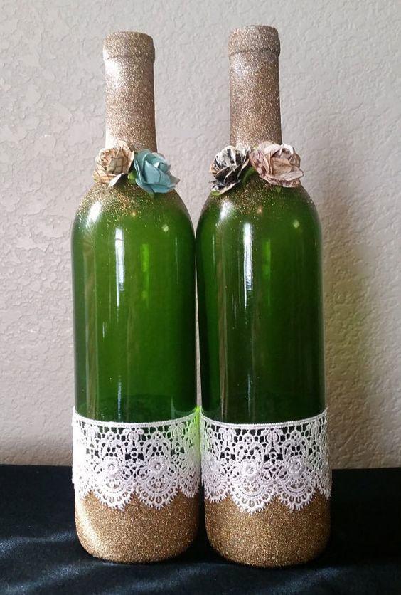 Veja mais fotos de garrafas decoradas com renda para lhe ajudar na criação da sua peça.