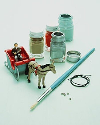- Primeiro comece montando o detalhe decorativo que vai ficar no interior. No caso do trenó, pinte a base de vermelho e use o fio encerado para fazer as rédeas do trenó e unir ao cavalo. As contas pratas podem ser utilizas para decorar o cavalo.